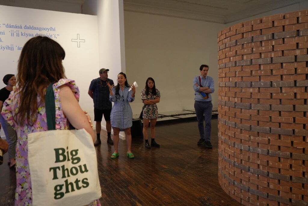 In Marfa we visited an exhibition, organized by our colleague and cohort member Daisy Nam and the sensitive team of Ballroom Marfa. Including works by artists Jorge Méndez Blake, Jesse Chun, Adriana Corral, JJJJJerome Ellis, and Nakai Flotte, Tongues of Fire takes its name from an essay by Chicana poet and theorist Gloria Anzaldúa and foregrounds “unconsidered, exiguous, and uncommon languages…that must be uttered to stay alive.” JJJJJerome Ellis’s suite of works are scores from the artists’ 2021 album, The Clearing. With this work, Ellis locates his own experience with disfluency (Ellis’ preferred terminology for stammering) in a history of regulated time that includes slave-holders’ tools of control—clocks and watches that enslaved people could not own or use. Ellis’s are vector-rich fields; they map relationships—affinities and tensions. They map “real space” and make both deferment and displacement visible.